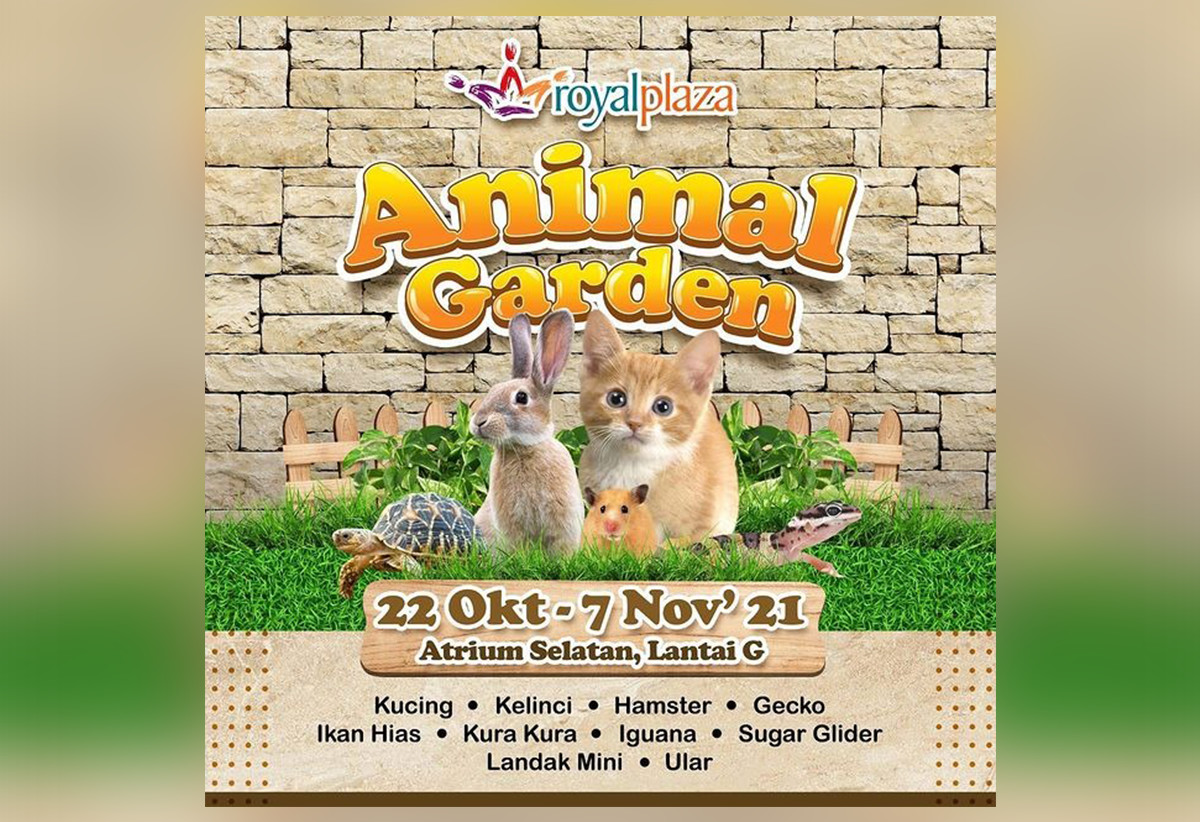 Lengkapi koleksi binatang peliharaanmu seperti kucing, kelinci, kura-kura, reptil dan masih banyak lagi. Yuk buruan ajak seluruh teman dan kerabat kamu ke ANIMAL GARDEN ROYAL PLAZA dari tanggal 22 Okt - 7 Nov 2021. Jangan sampai kelewatan ya !!