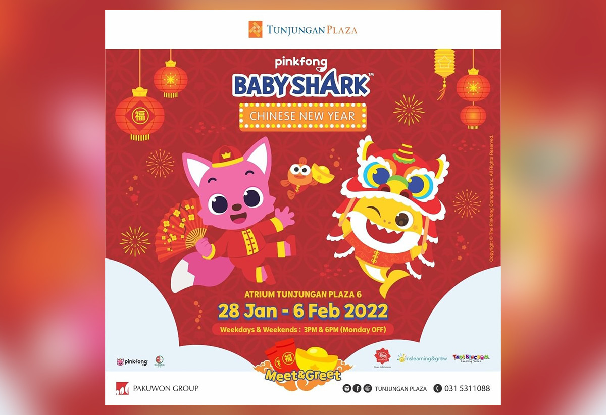 Menyemarakkan Chinese New Year tahun ini, Tunjungan Plaza menghadirkan meet and greet karakter Baby Shark dan Pink Fong yang pasti dicintai anak-anak.
