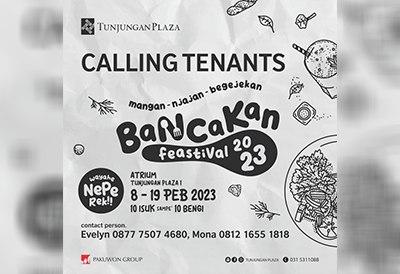 Tenant-tenant F&B, yuk gabung bersama Tunjungan Plaza di event terbaru Bancakan Feastival 8-19 Februari 2023 di Atrium TP1.