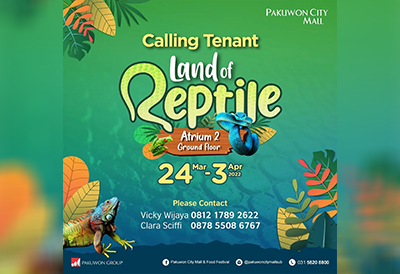 Pakuwon City Mall sedang #CallingTenant untuk pemilik bisnis tanaman untuk meramaikan acara "Land of Reptile" yang akan diselenggarakan di:
