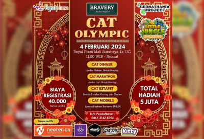 Ayo warga Surabaya terutama pecinta kucing dan semua yang punya kucing, bisa nih ikutan lomba “CAT OLYMPIC” di ROYAL PLAZA MALL yang akan di laksanakan pada :