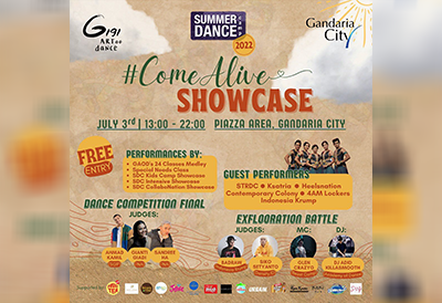 Calling back to the pre-pandemic era, it's going to be a whole day of dance! Seperti tahun-tahun sebelumnya, panggung puncak SDC akan berlangsung seharian penuh dan banyak ragam acaranya! From a medley of our regular classes, a dance film showcase, an exciting freestyle battle called Exflooration, the final round of our dance competition, and a showcase of our friends, and of course the programs of #GAODSummerDanceCamp!!