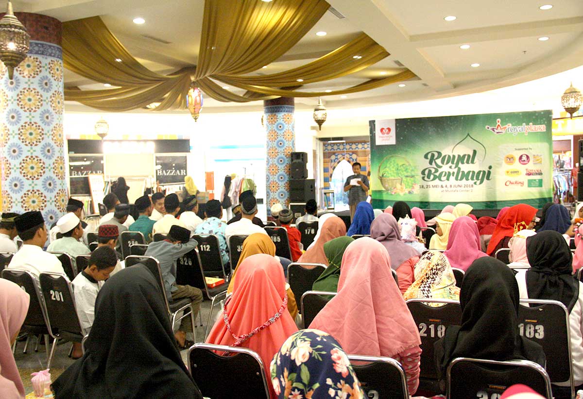 Acara Royal Berbagi dilaksanakan pada 18, 25 Mei 2018 serta 4 dan 8 Juni 2018 di Mustafa Center 2 Royal Plaza lantai UG. Royal Plaza bekerja sama dengan tenant food and beverage memberikan paket makanan buka puasa kepada para partisipan acara. Royal Plaza juga memberikan donasi berupa uang saku, pakaian dan bingkisan paket sekolah kepada para anak yatim dan dhuafa.